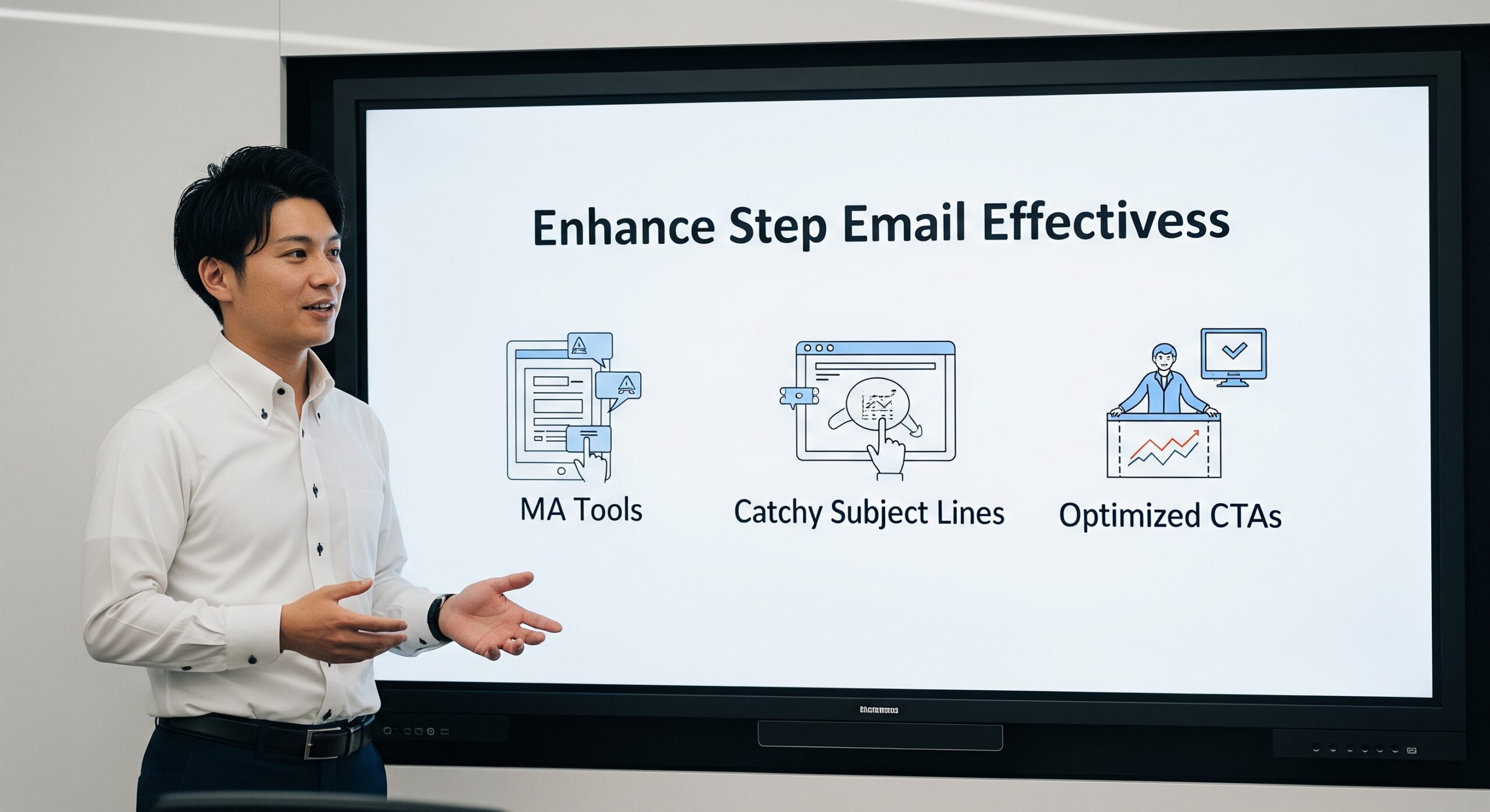 シナリオが決まったら、各メールの件名と本文を作成します。BtoBでは、奇をてらうよりも、内容が簡潔に分かり、自分ごととして捉えられる件名が効果的です。本文は、専門用語を多用せず、ペルソナの課題に寄り添い、解決策を提示する構成を意識しましょう。